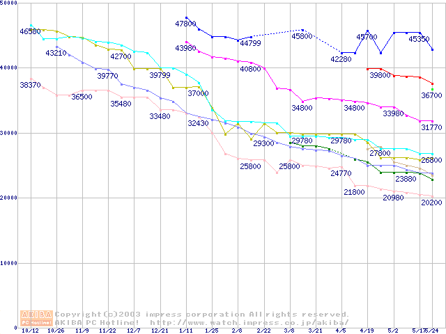 HDD主要製品の最安値推移