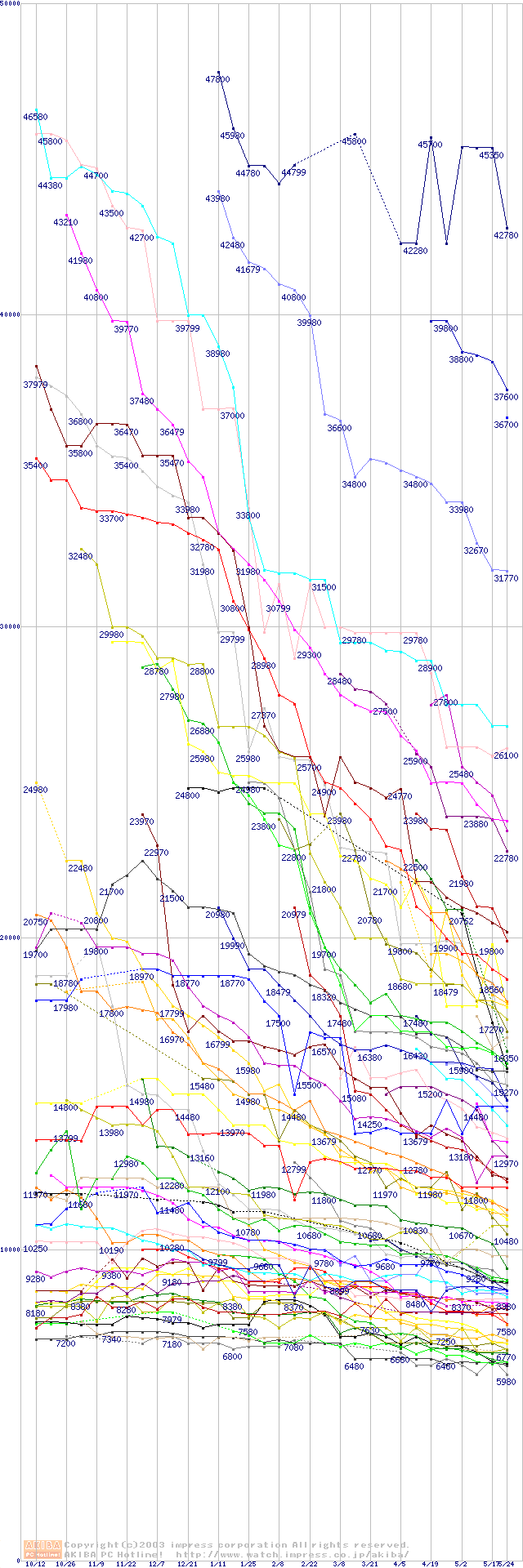 HDD主要製品の最安値推移