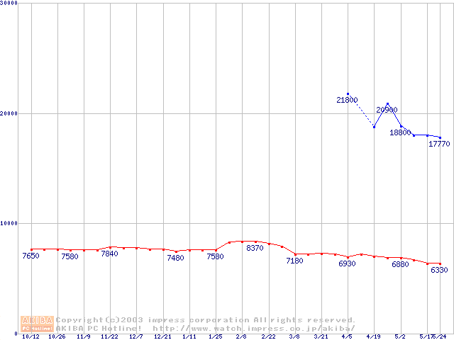 | [↑前グラフ]: | HDD 100GB以上(5400rpmクラス)の最安値推移 |