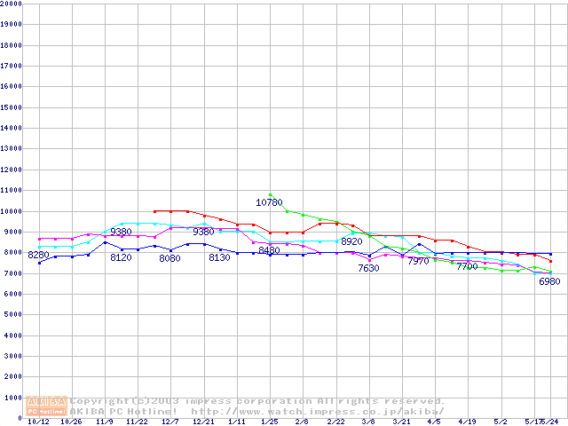 | [↓次グラフ]: | HDD 60GB~80GB未満(7200rpmクラス)の最安値推移 |