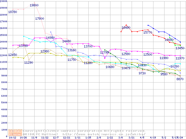 HDD 100~160GB未満(7200rpmクラス)の最安値推移