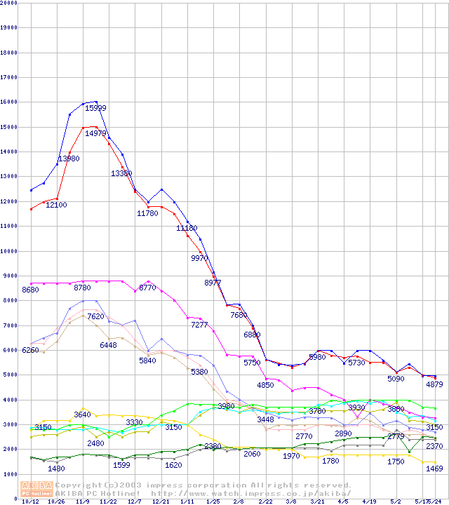 メモリ主要製品の最安値推移