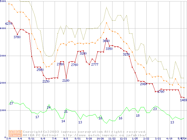メモリ主要製品の最安値推移