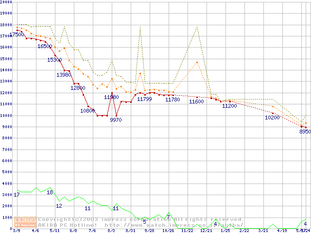 WD Caviar (5400rpm,UltraATA/100,2MB)の最安値推移