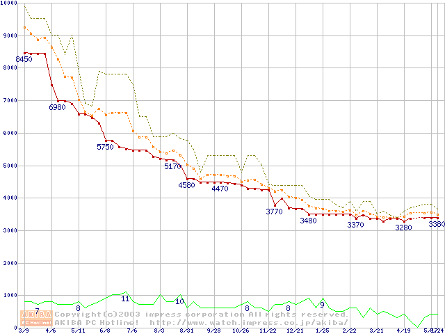Socket A (PGA,FSB 200MHz,L2 64KB,Morgan)の最安値推移