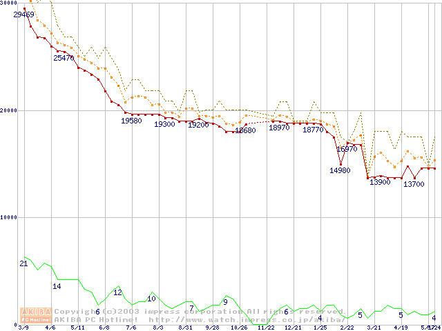 WD Caviar (7200rpm,UltraATA/100,2MB)の最安値推移