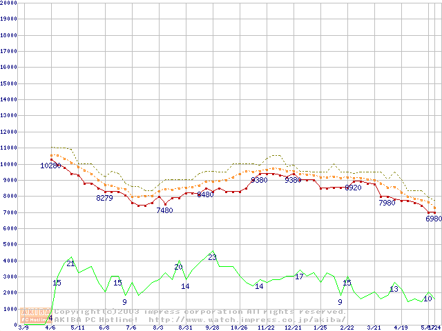 Deskstar 120GXP (7200rpm,2MB,UltraATA/100,BB)の最安値推移