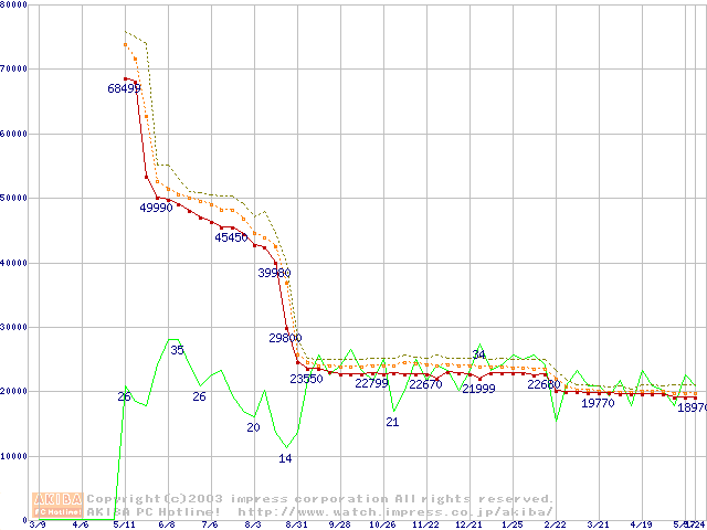 Pentium 4 2.4B GHz リテールパッケージの価格推移