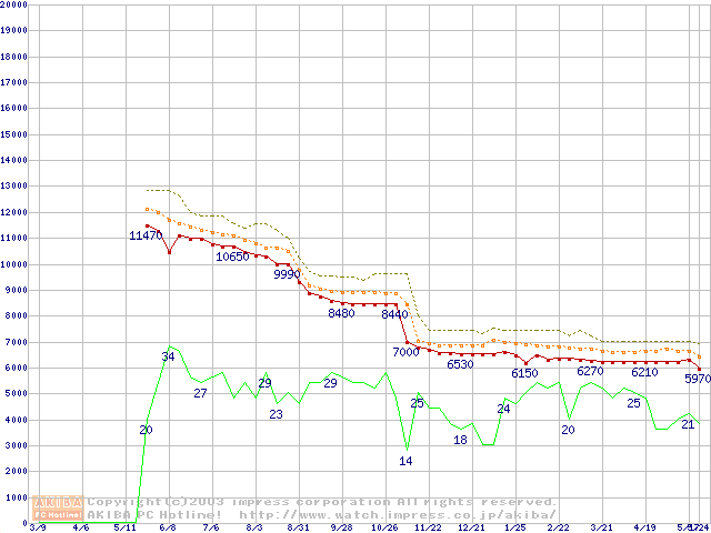 Celeron 1.40GHz FC-PGA2 リテールパッケージの価格推移
