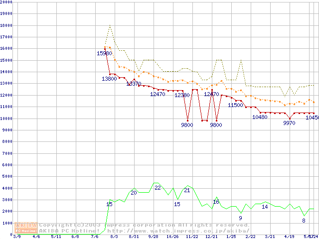 PC1066 DRDRAM RIMM4200(32bit)の最安値推移