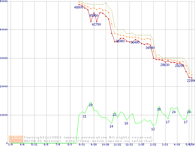 Pentium 4 2.66GHz リテールパッケージの価格推移