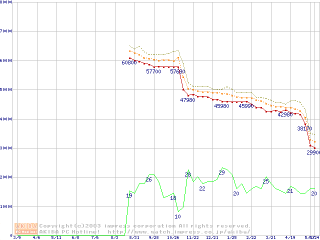 Pentium 4 2.80GHz リテールパッケージの価格推移