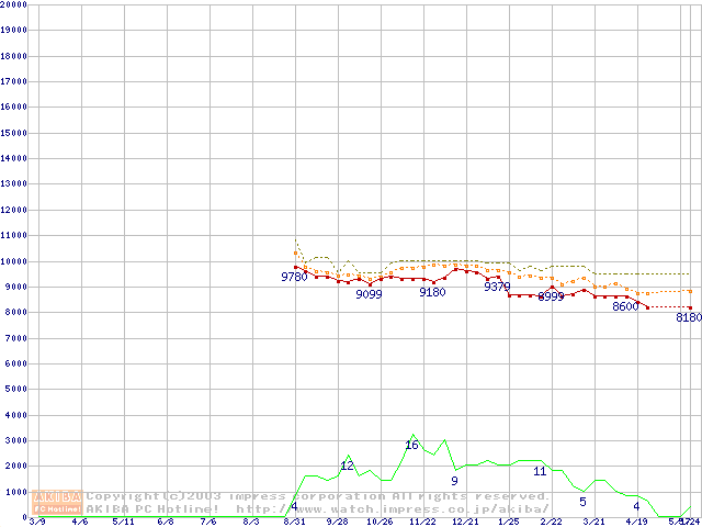 DiamondMax 16 (5400rpm,UltraATA/133,2MB,80GB/Platter,BB)の最安値推移