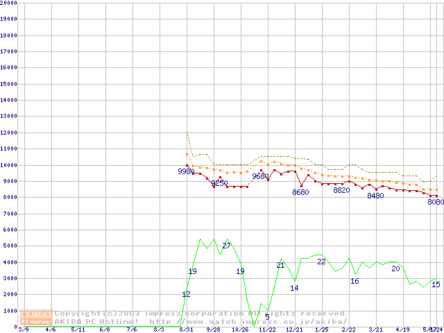 DiamondMax 16 (5400rpm,UltraATA/133,2MB,80GB/Platter,FDB)の最安値推移
