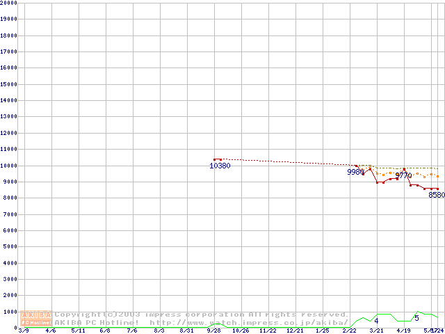SpinPoint V60 (5400rpm,UltraATA/100,2MB)の最安値推移