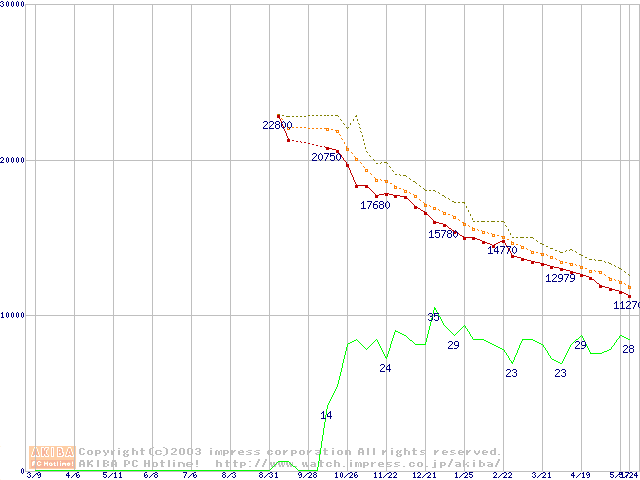 DiamondMax Plus 9 (7200rpm,2MB,UltraATA/133,FDB)の最安値推移