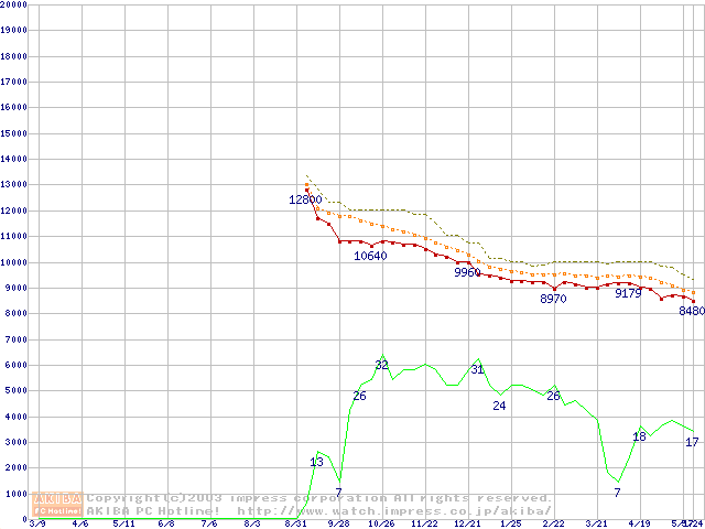 DiamondMax Plus 9 (7200rpm,2MB,UltraATA/133,FDB)の最安値推移