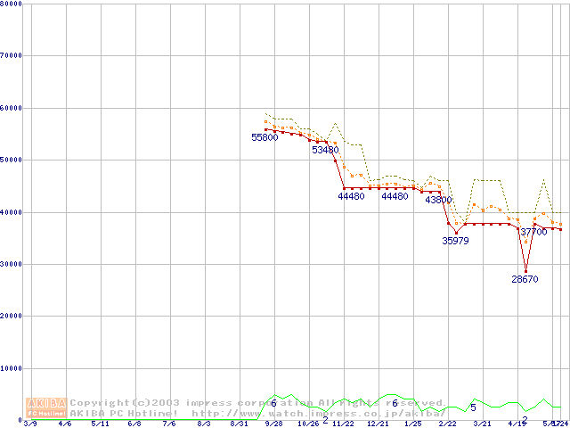 Socket 603 (micro-PGA,FSB 400MHz,L2 512KB,Prestonia)の最安値推移