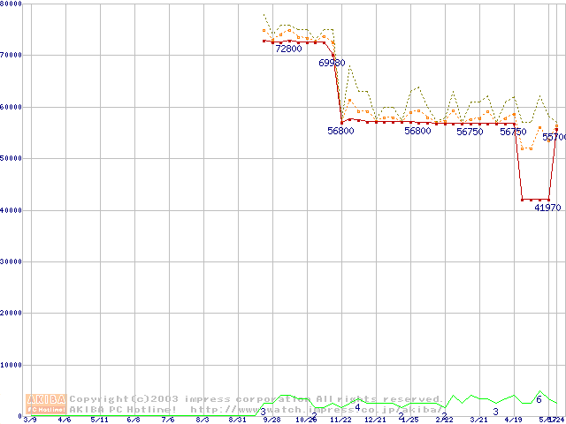 Socket 603 (micro-PGA,FSB 400MHz,L2 512KB,Prestonia)の最安値推移