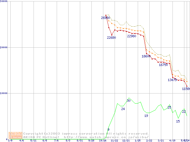 Athlon XP 2400+ (2GHz) リテールパッケージの価格推移