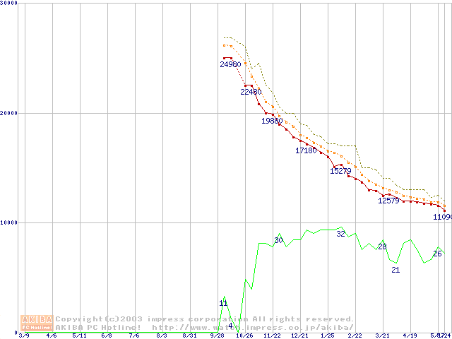 Deskstar 180GXP IC35L120AVV207-0 (120GB)の価格推移
