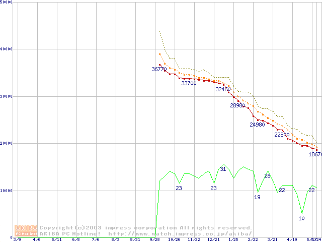 Deskstar 180GXP (7200rpm,8MB,UltraATA/100,FDB)の最安値推移