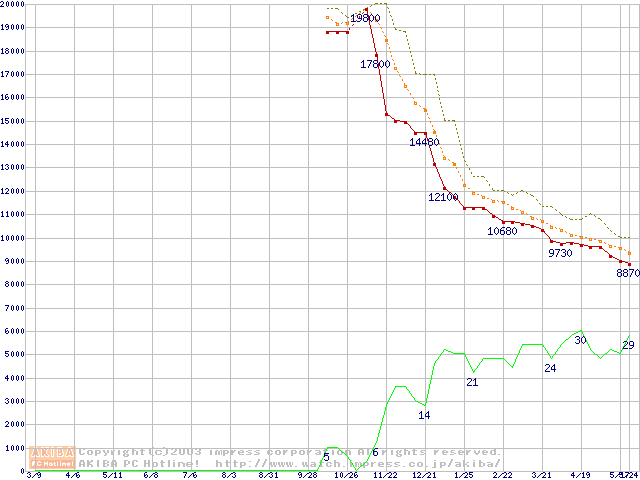 Deskstar 180GXP IC35L090AVV207-0 (80GB)の価格推移