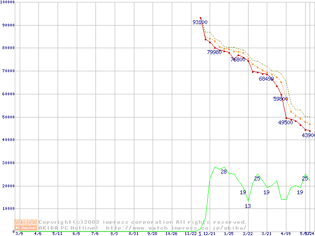 Pentium 4 3.06GHz リテールパッケージの価格推移