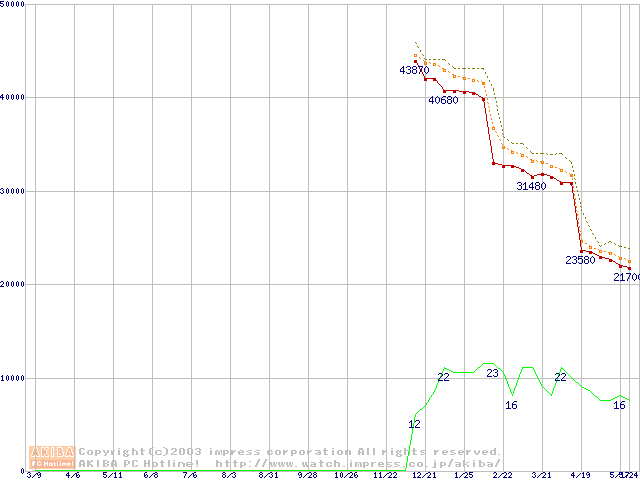 Athlon XP 2700+ (2.17GHz) リテールパッケージの価格推移