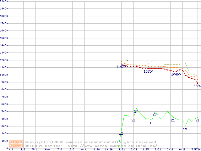 Socket 478 (micro-PGA,FSB 400MHz,L2 128KB,Northwood)の最安値推移