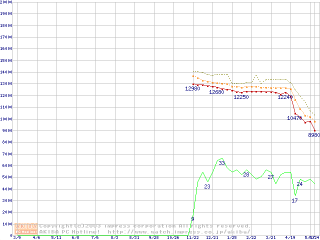 Socket 478 (micro-PGA,FSB 400MHz,L2 128KB,Northwood)の最安値推移