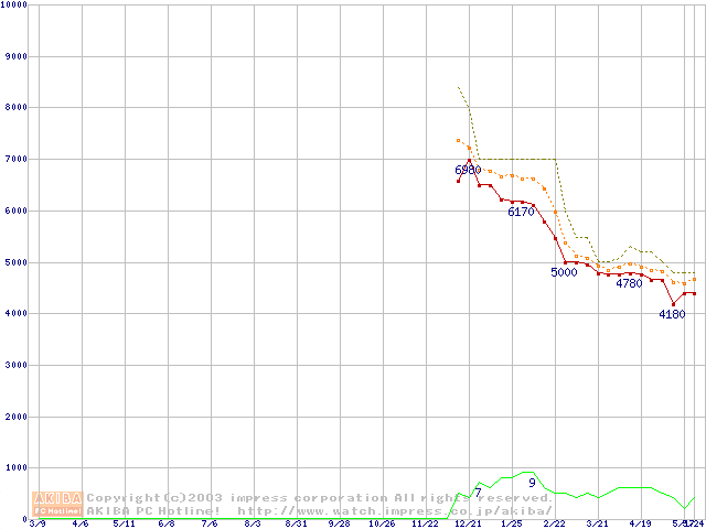 Socket 370 (PGA,FSB 100MHz,L2 64KB,Ezra)の最安値推移