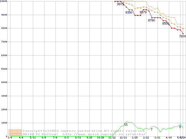 Deskstar 180GXP (7200rpm,2MB,UltraATA/100,FDB)の最安値推移