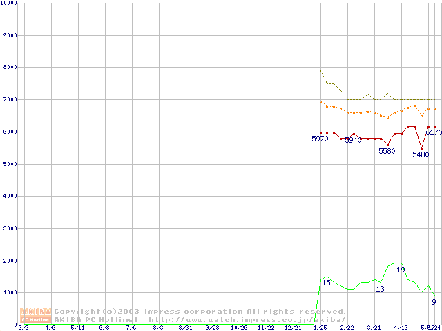 Socket A (OPGA,FSB 266MHz,L2 256KB,Thoroughbred)の最安値推移