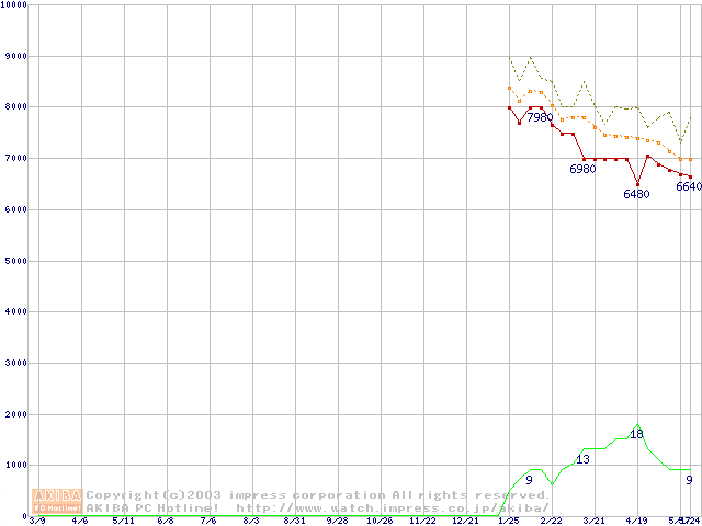 Socket A (OPGA,FSB 266MHz,L2 256KB,Thoroughbred)の最安値推移
