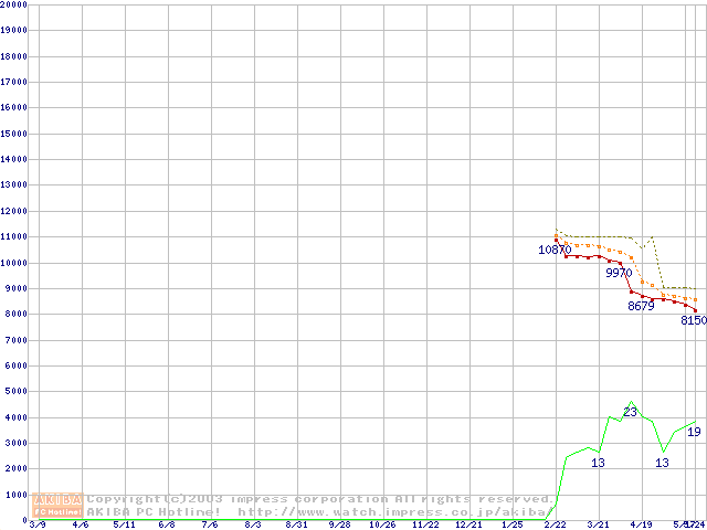 Athlon XP 2000+ (1.67GHz) リテールパッケージ(Thoroughbred)の価格推移