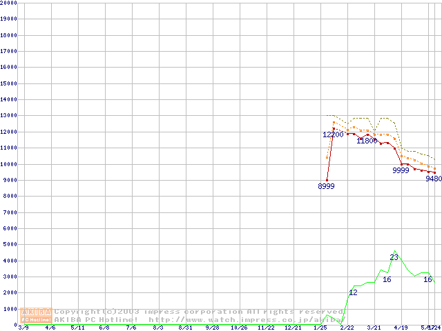 Socket A (OPGA,FSB 266MHz,L2 256KB,Thoroughbred)の最安値推移
