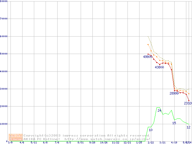 Socket A (OPGA,FSB 333MHz,L2 512KB,Barton)の最安値推移