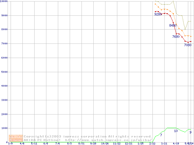 Socket A (OPGA,FSB 266MHz,L2 256KB,Thoroughbred)の最安値推移