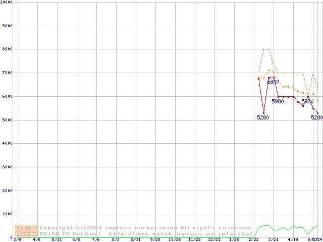 Socket 370 (PGA,FSB 133MHz,L2 64KB,Nehemiah)の最安値推移