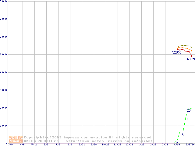 Socket 478 (micro-PGA,FSB 800MHz,L2 512KB,Hyper-Threading,Northwood)の最安値推移
