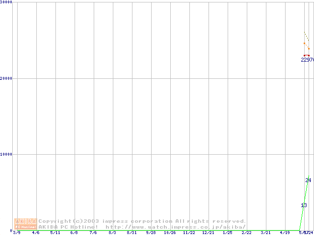 Socket 478 (micro-PGA,FSB 800MHz,L2 512KB,Hyper-Threading,Northwood)の最安値推移