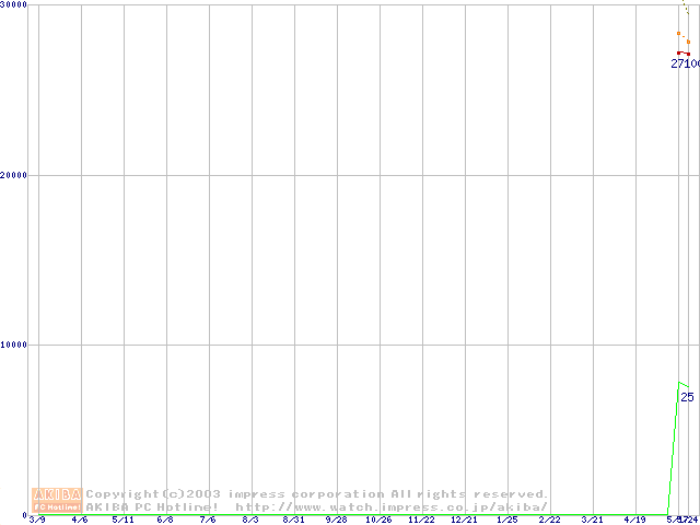 Socket 478 (micro-PGA,FSB 800MHz,L2 512KB,Hyper-Threading,Northwood)の最安値推移