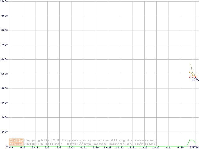 Socket 370 (PGA,FSB 133MHz,L2 64KB,Nehemiah)の最安値推移