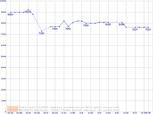 | [↓次グラフ]: | Socket A (PGA,FSB 266MHz,L2 256KB,Thunderbird)の最安値推移 |