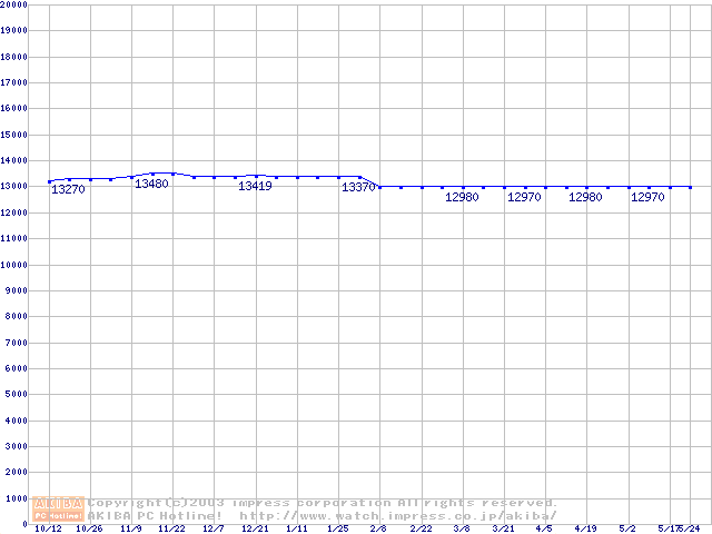 | [↑前グラフ]: | Socket 370 (FC-PGA2,FSB 133MHz,L2 512KB,Tualatin)の最安値推移 |