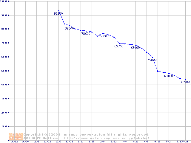 | [↑前グラフ]: | Socket 478 (micro-PGA,FSB 800MHz,L2 512KB,Hyper-Threading,Northwood)の最安値推移 |