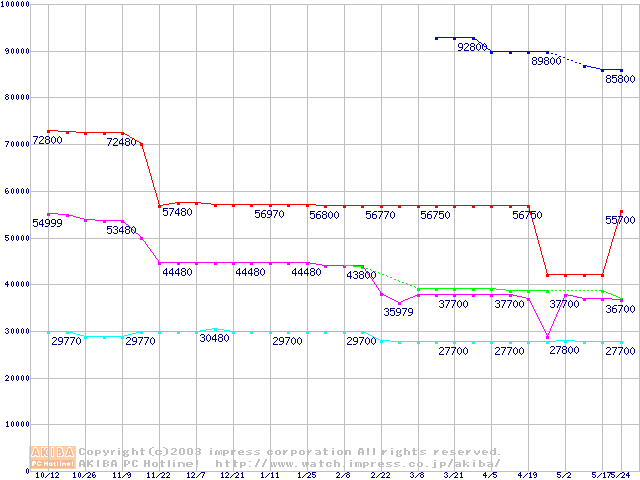 | [↑前グラフ]: | Socket 604 (micro-PGA,FSB 533MHz,L2 512KB,Prestonia)の最安値推移 |