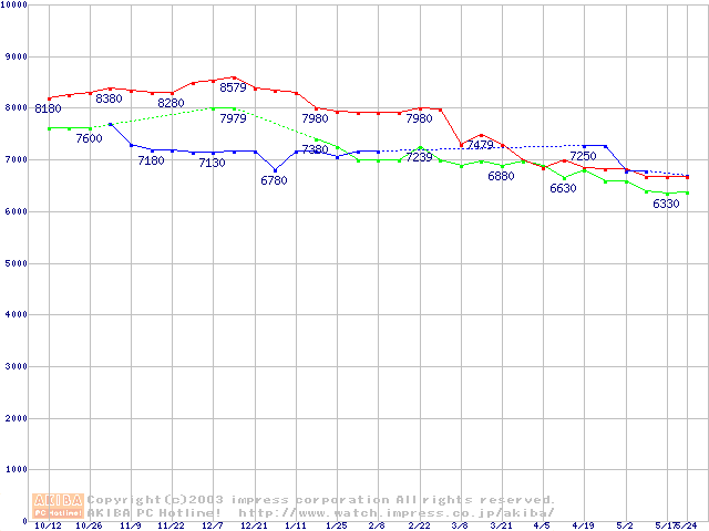 | [↓次グラフ]: | Fireball 3 (5400rpm,UltraATA/133,2MB,BB)の最安値推移 |