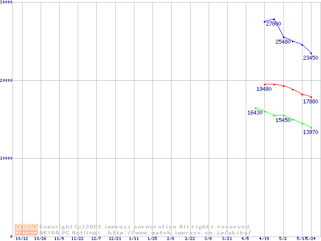 | [↑前グラフ]: | Fireball 3 (5400rpm,UltraATA/133,2MB,BB)の最安値推移 |